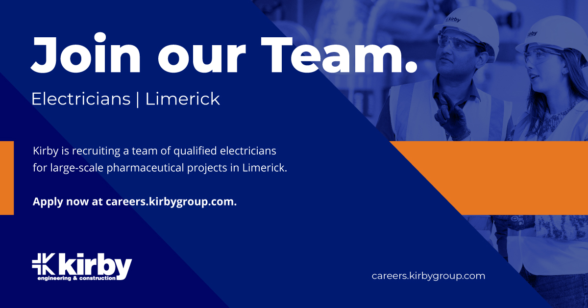 Kirby Group Engineering is hiring qualified electricians across Limerick County for Major pharmaceutical projects.